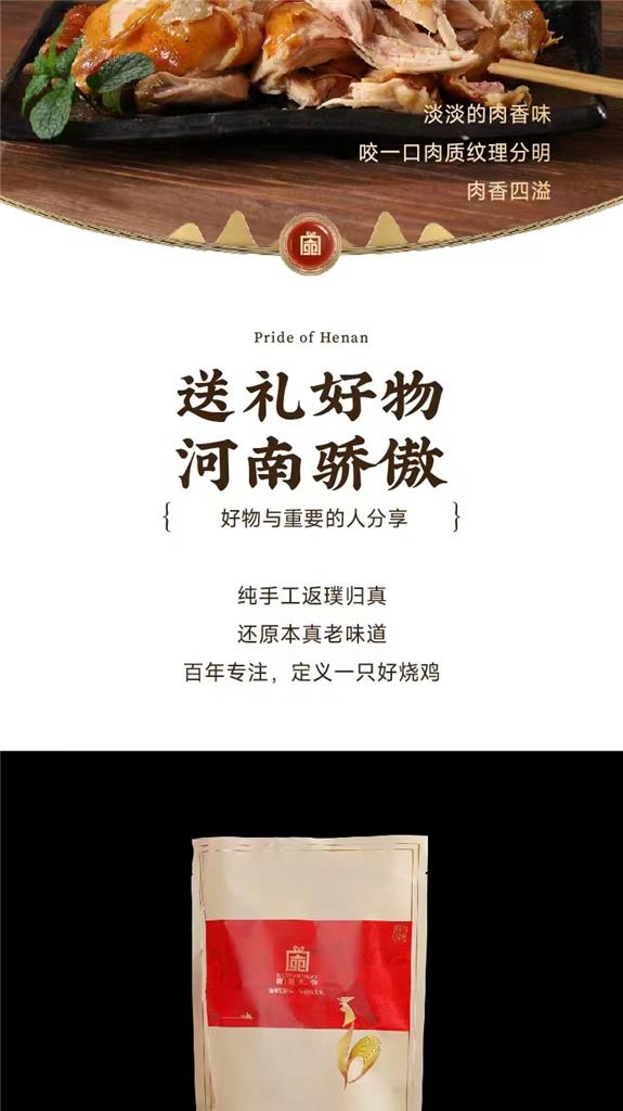 1、本品为正宗源头南阳镇平侯氏烧鸡,【遇见白红】助力南阳本地传统经典土特产销售。